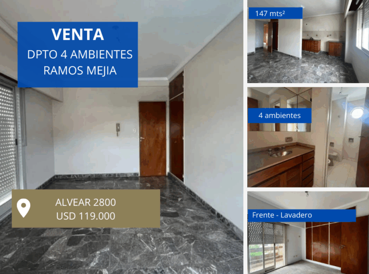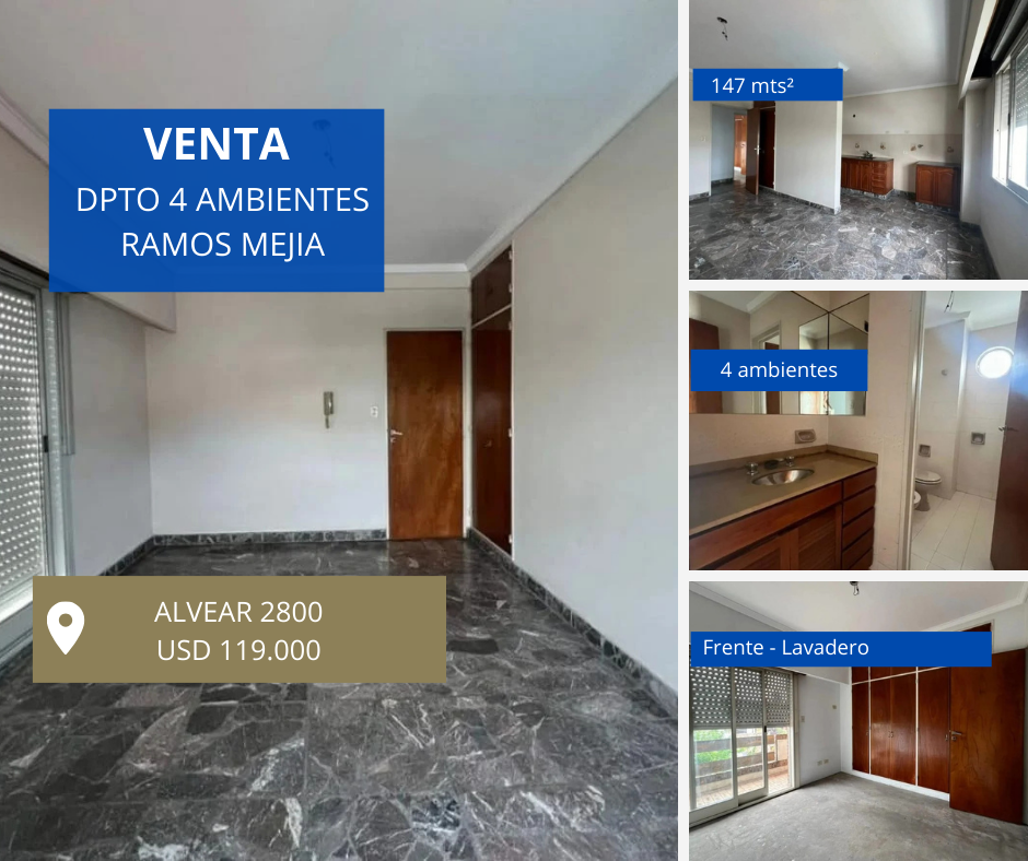 EXCELENTE DEPARTAMENTO DE 4 AMBIENTES EN PRIMER PISO POR ESCALERA, 147 MTS TOTALES, AMPLIO LIVING COMEDOR, COCINA COMEDOR DIARIO, LAVADERO, 2 BAÑOS, 3 AMPLIOS DORMITORIOS, IMPECABLE ESTADO DEL INMUEBLE. VENTA DIRECTA.