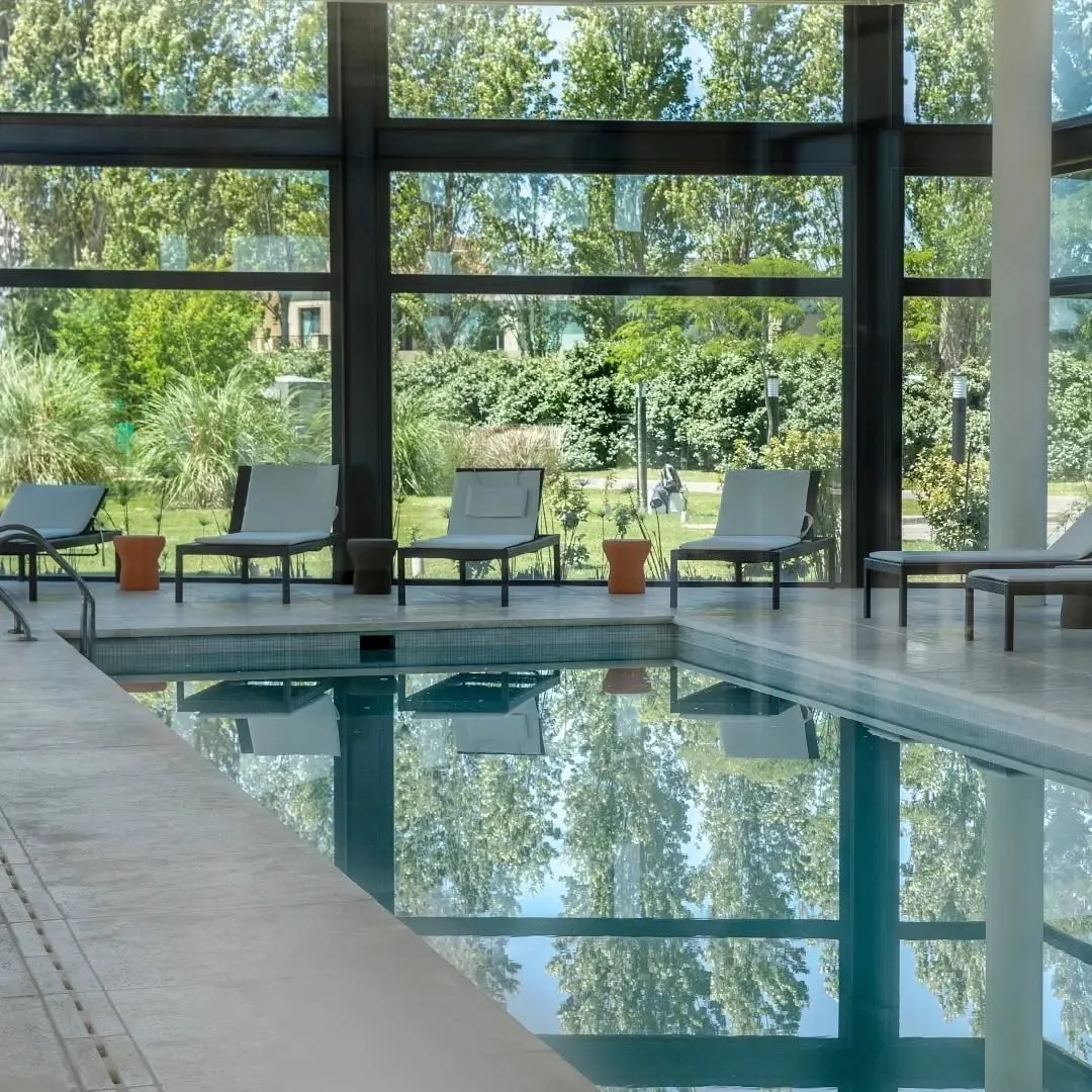 El exterior es un verdadero oasis: piscina revestida en venecitas con playa húmeda y deck atérmico, riego automático, césped grama bahiana y cochera cubierta para dos autos.