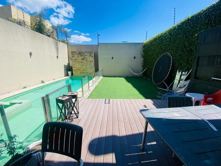 IMPONENTE CASA SOBRE LOTE DE 10 MTS DE FRENTE POR 30 MTS DE LARGO, LA CASA CUENTA EN LA PLANTA BAJA CON AMPLIO LIVING COMEDOR, COCINA COMEDOR DIARIO, GALERIA, PATIO CON FONDO, PARRILLA Y PISCINA, PRIMERA PLANTA 1 BAÑO COMPLETO Y OFICINA O DORMITORIO, SEGUNDA PLANTA DOS DORMITORIOS CON BALCON Y BAÑO COMPLETO CON BAÑERA, DORMITORIO PRINCIPAL EN SUITE CON VESTIDOR, ESCRITORIO Y MICRO CINE CON BAÑO, LAUNDRY Y TERRAZA, TODO CON DETALLES DE CATEGORIA EDILICIA.