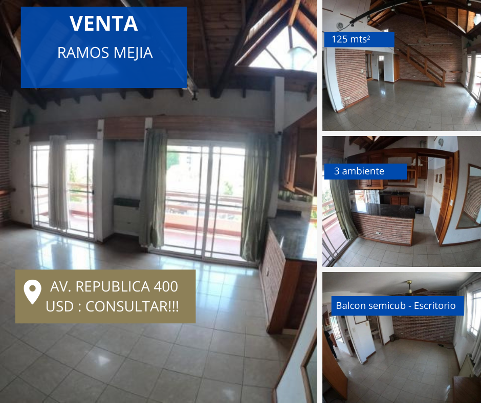 EXCELENTE DEPARTAMENTO DE 3 AMBIENTES Y MEDIO EN DUPLEX, 125 MTS, AMPLIO LIVING COMEDOR, COCINA SEPARADA CON MUEBLES DE COCINA Y ANAFE, DOS BAÑOS, UNO COMPLETO CON BAÑERA, EL OTRO CON CUADRO DE DUCHA, DORMITORIO CON PLACARD E INTERIORES, BALCON DE SEMI CUBIERTO, PLANTA ALTA DORMITORIO Y ESCRITORIO. SE VENDE ALQUILADO.