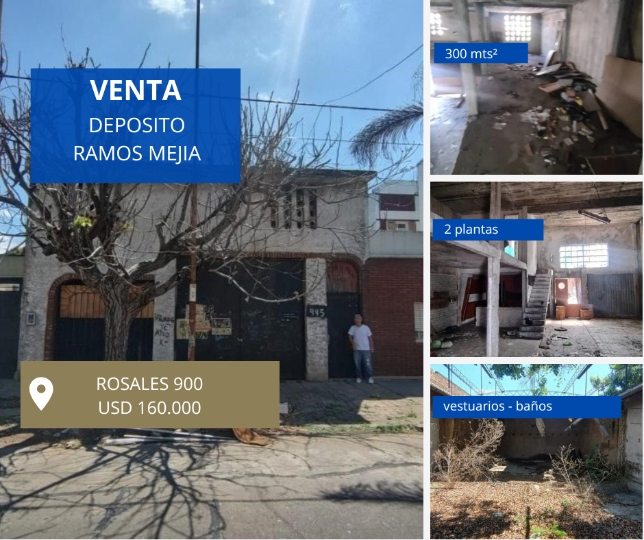 GALPON DE 8,66 MTS DE FRENTE POR 35 MTS DE LARGO, EN DOS PLANTAS A REFACCIONAR, TECHO LOSA Y TINGLADO, VESTUARIOS, BAÑOS EN PLANTA BAJA Y PLANTA ALTA, SECTOR DEPOSITO. VENTA DIRECTA POR TRACTO ABREVIADO.