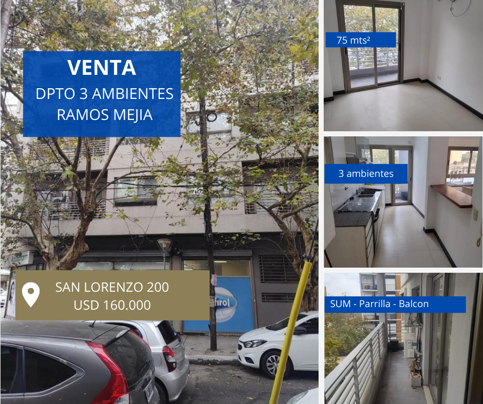 HERMOSO DEPARTAMENTO DE 3 AMBIENTES CON VISTA AL FRENTE, AMPLIO LIVING COMEDOR, PISOS PORCELLANATO, COCINA SEPARADA CON ESPACIO PARA LAVARROPAS, BALCON AL FRENTE, DOS BAÑOS COMPLETOS, DOS DORMITORIOS CON PLACARD E INTERIORES, PRINCIPAL EN SUITE, EDIFICIO CON SUM Y PARRILLA, EXCELENTE UBICACION, NO DISPONE COCHERA, LA UNIDAD TIENE 75 MTS APROXIMADOS